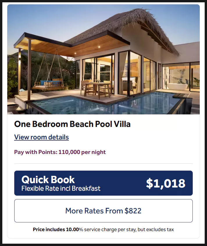 Even the Huvafen Fushi Maldives, an SLH Hotel, costs 1,090 USD+taxes for a one-night stay when booked on a paid basis, but 150,000 points when booked with points, so you’ll save even more when booking with points.