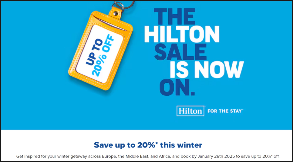 Planning a trip to Europe, the Middle East, or Africa? ✈️ Hilton has launched an exciting Hilton promotion offering up to 20% off weekend stays at their hotels across these regions. With a booking window open until January 28, 2025, and stay dates available until April 21, 2025, this is a perfect opportunity for your next getaway!