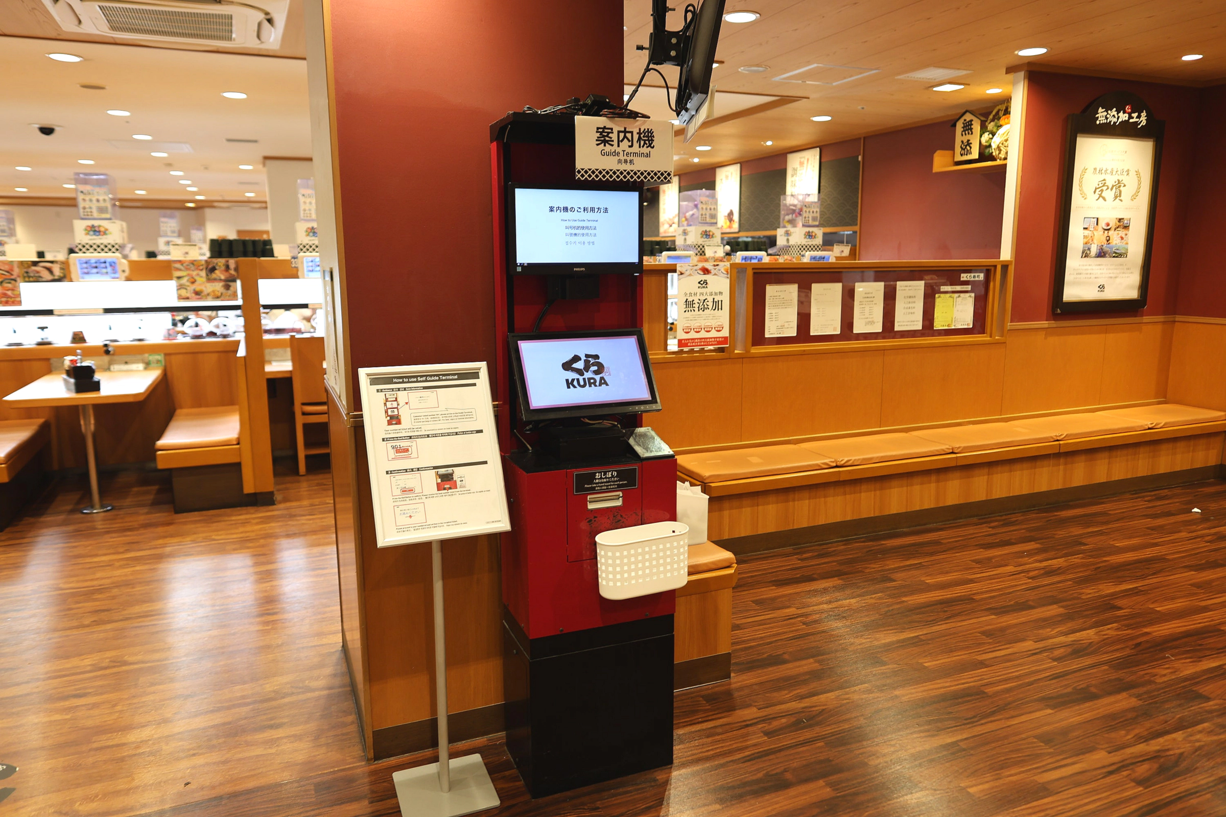 以前、長時間待った経験があったので、今回はオンライン予約をしてから訪問しました。入り口の機械で簡単に整理券を発行でき、画面上でカウンター席かボックス席か、人数を選ぶだけで完了。とても分かりやすいシステムなので、初めての方でも簡単に操作できます。