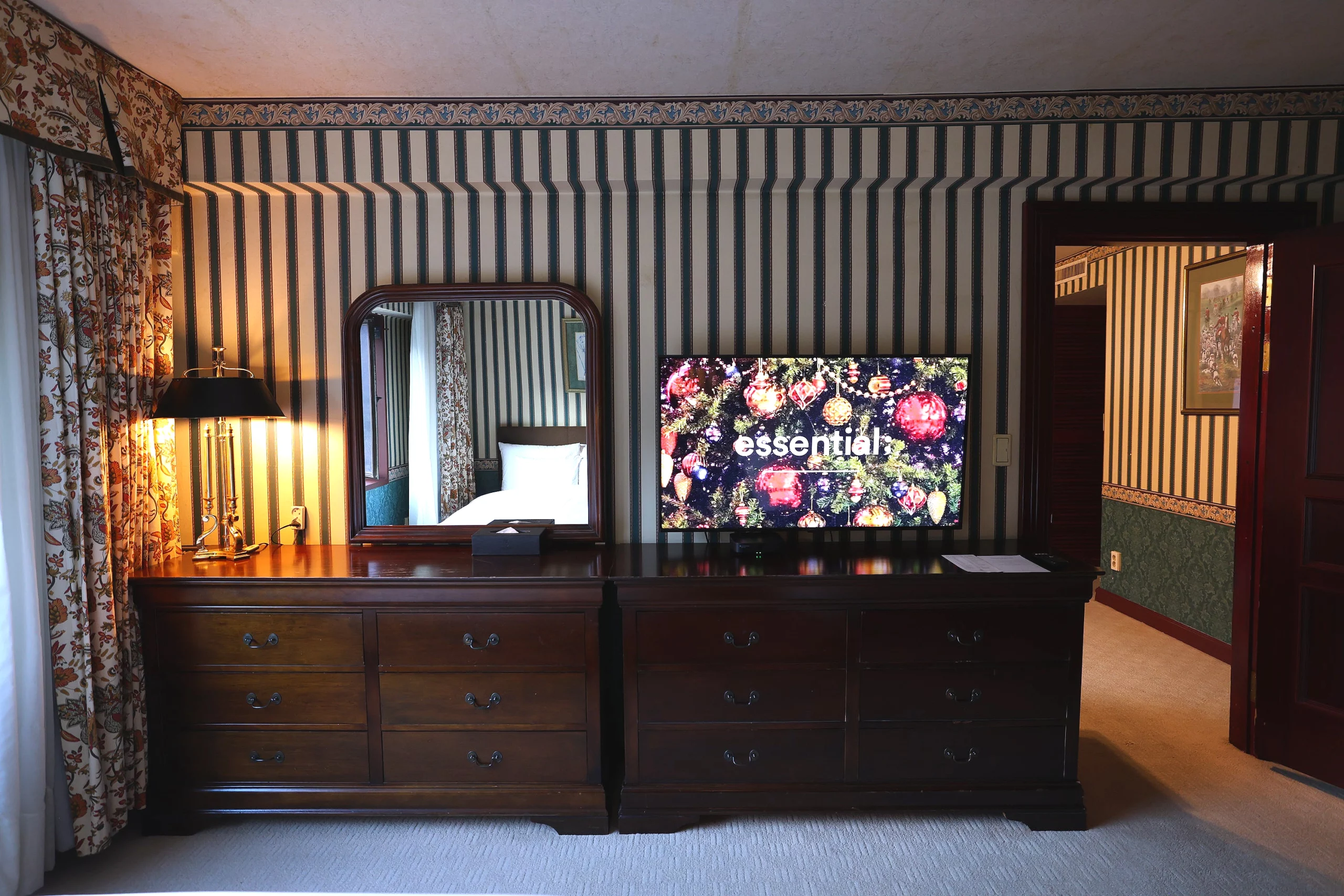 部屋のドアにあるドアノッカーは、クラシックなヨーロピアンデザインの特徴で、私の目を引いた。このような小さなディテールが、このホテルの英国的魅力を高めている。