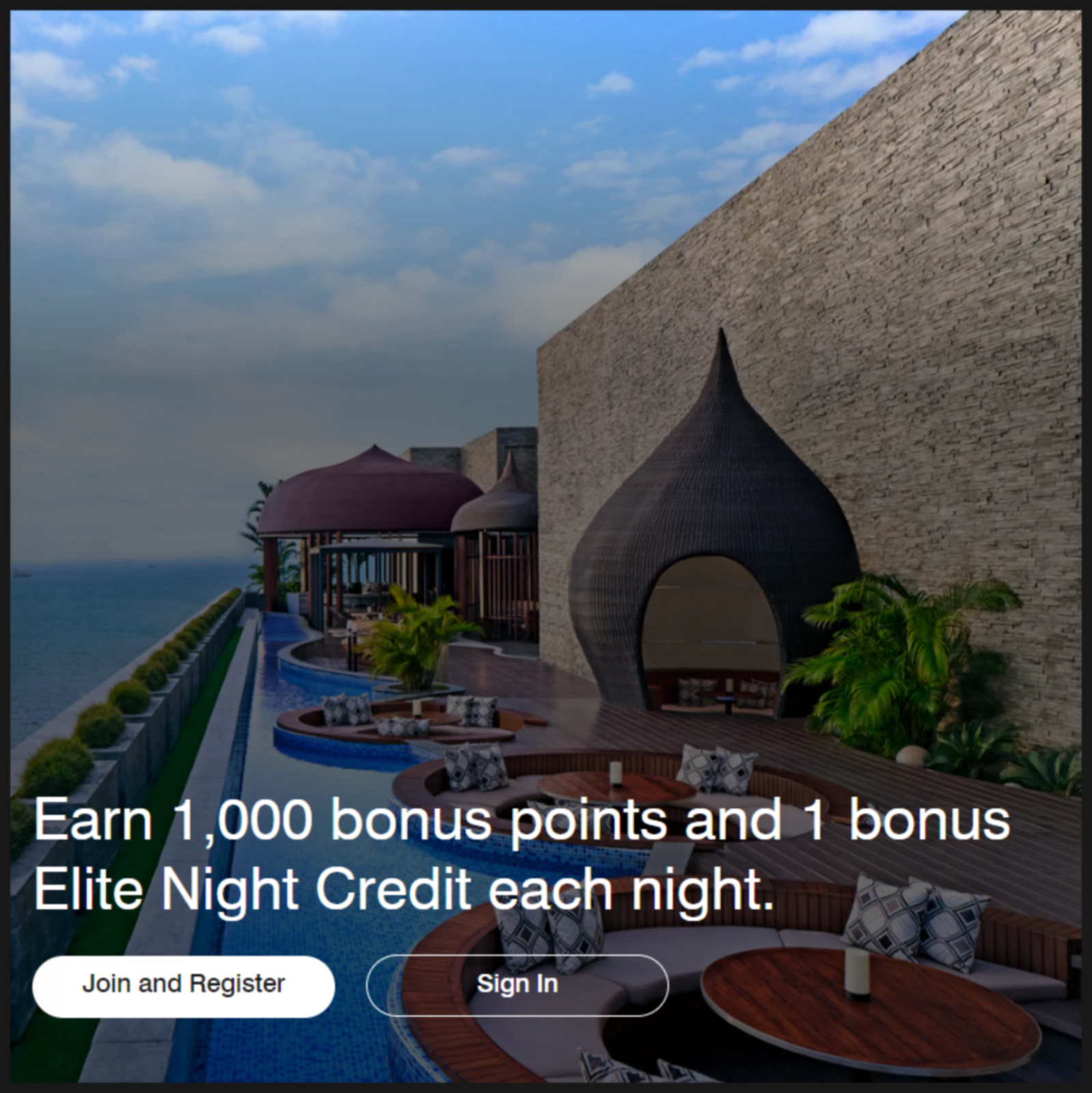 • 추가 혜택: 유효한 유료 숙박 1박당 1,000 보너스 포인트 및 1 엘리트 나이트 크레딧 동시 제공.