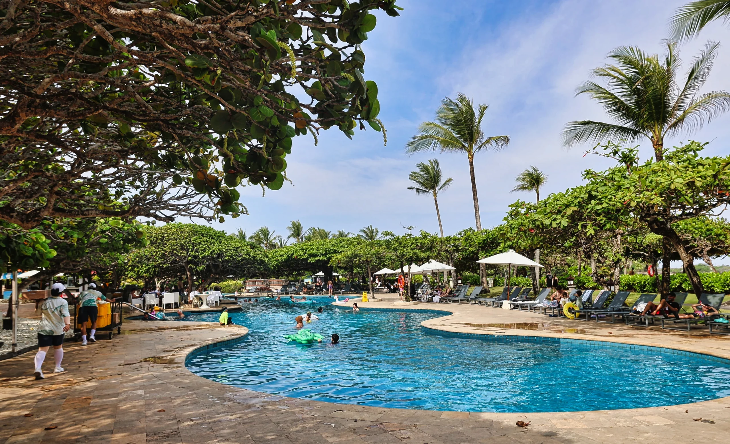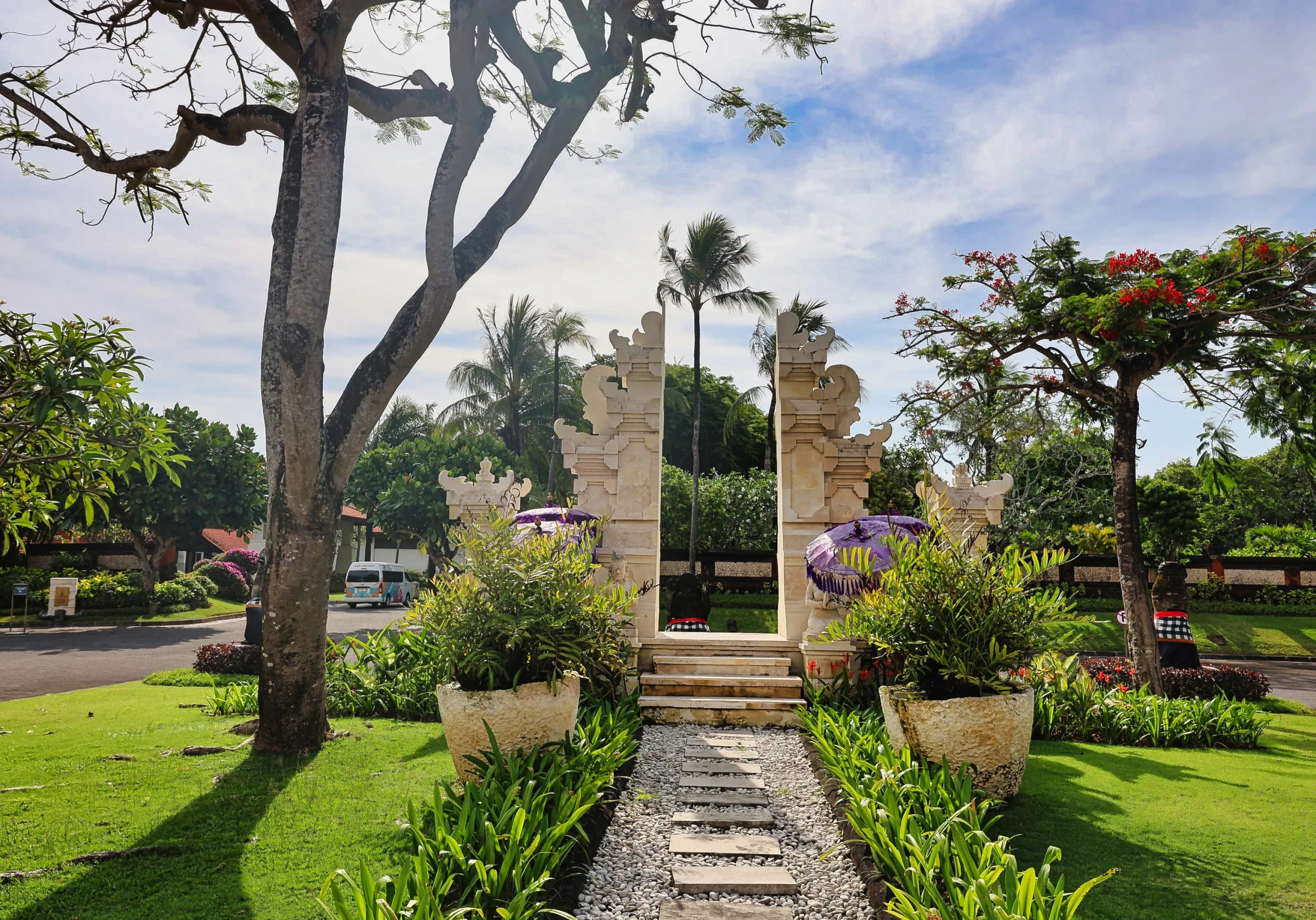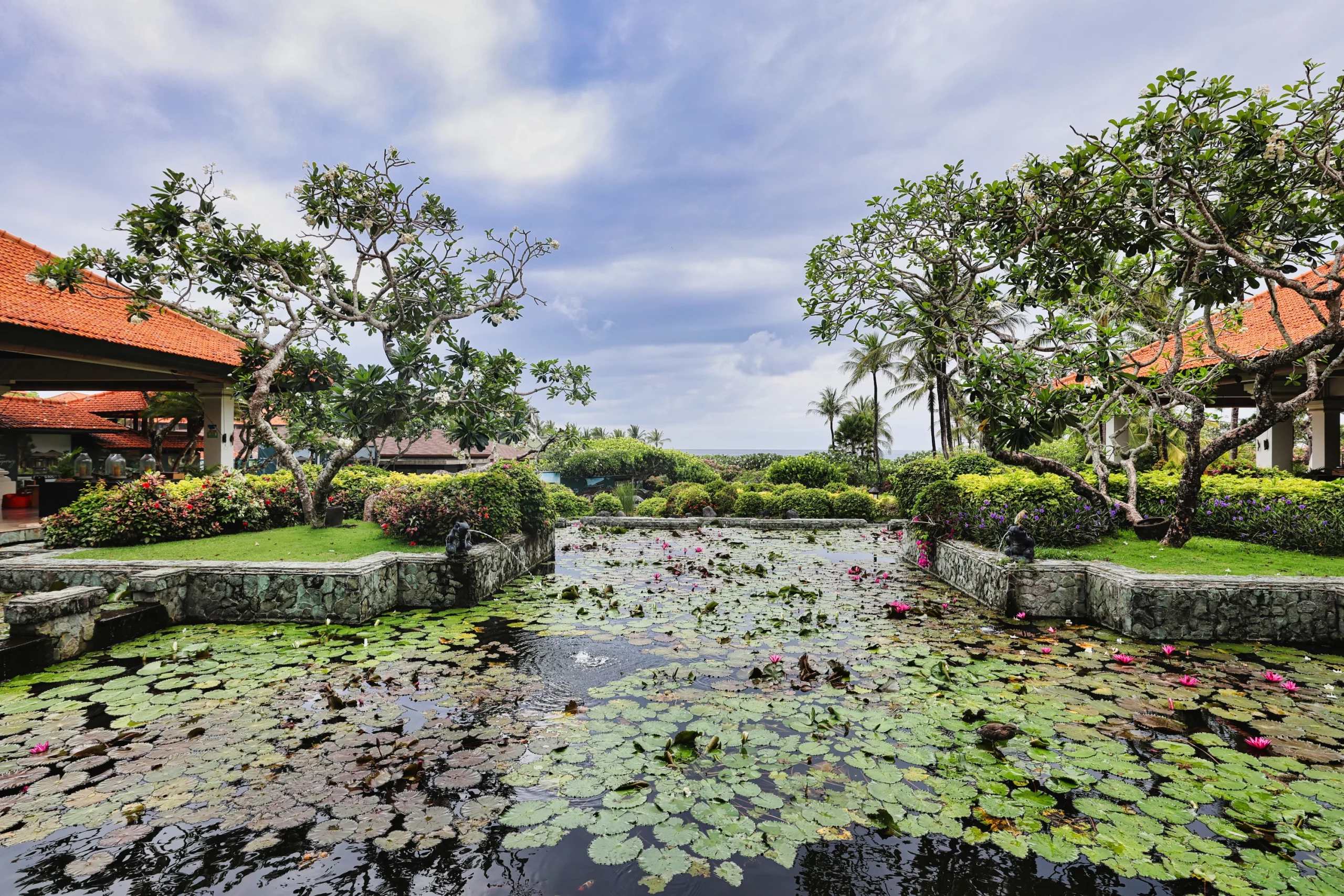 The grounds of the Grand Hyatt Bali are vast and beautifully maintained. Wandering through the property feels like exploring a tropical park, with various buildings connected by garden paths, tranquil ponds, and ocean vistas. The diverse collection of trees and flowers makes just walking around a delightful experience. We visited in early October and were treated to perfect weather, with sunny, dry days and comfortable humidity levels.