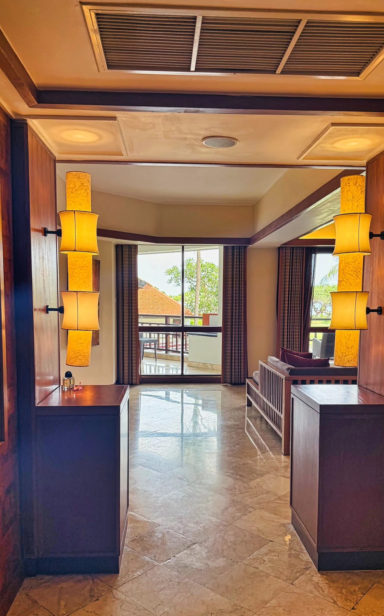 We arrived by a Grab taxi and were met with a warm welcome from the staff right at the curb. They took care of our luggage immediately, allowing us to head inside unencumbered. As we walked toward the lobby, we were greeted by the sight of two traditional Balinese dancers, who graciously paused to take photos with guests.