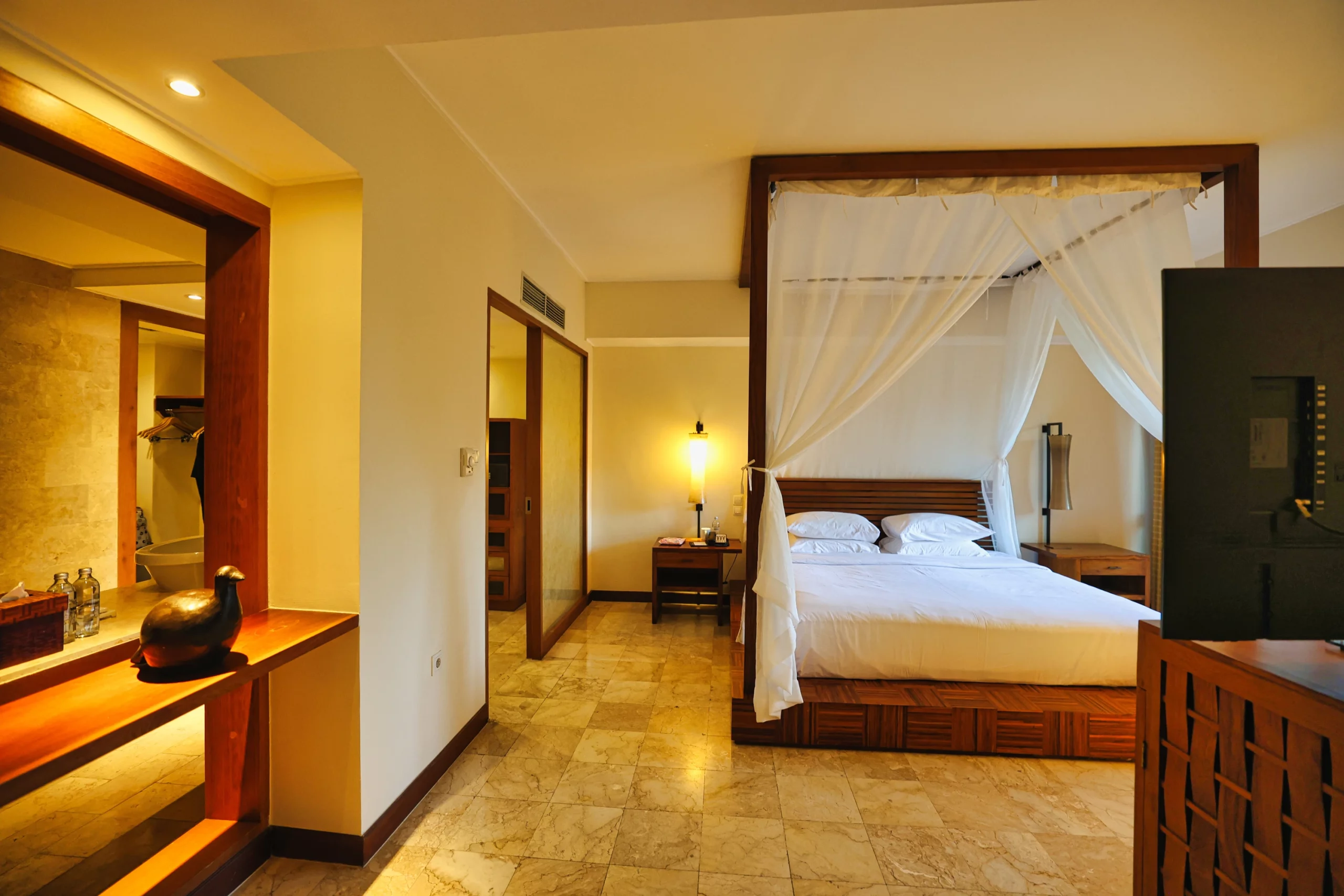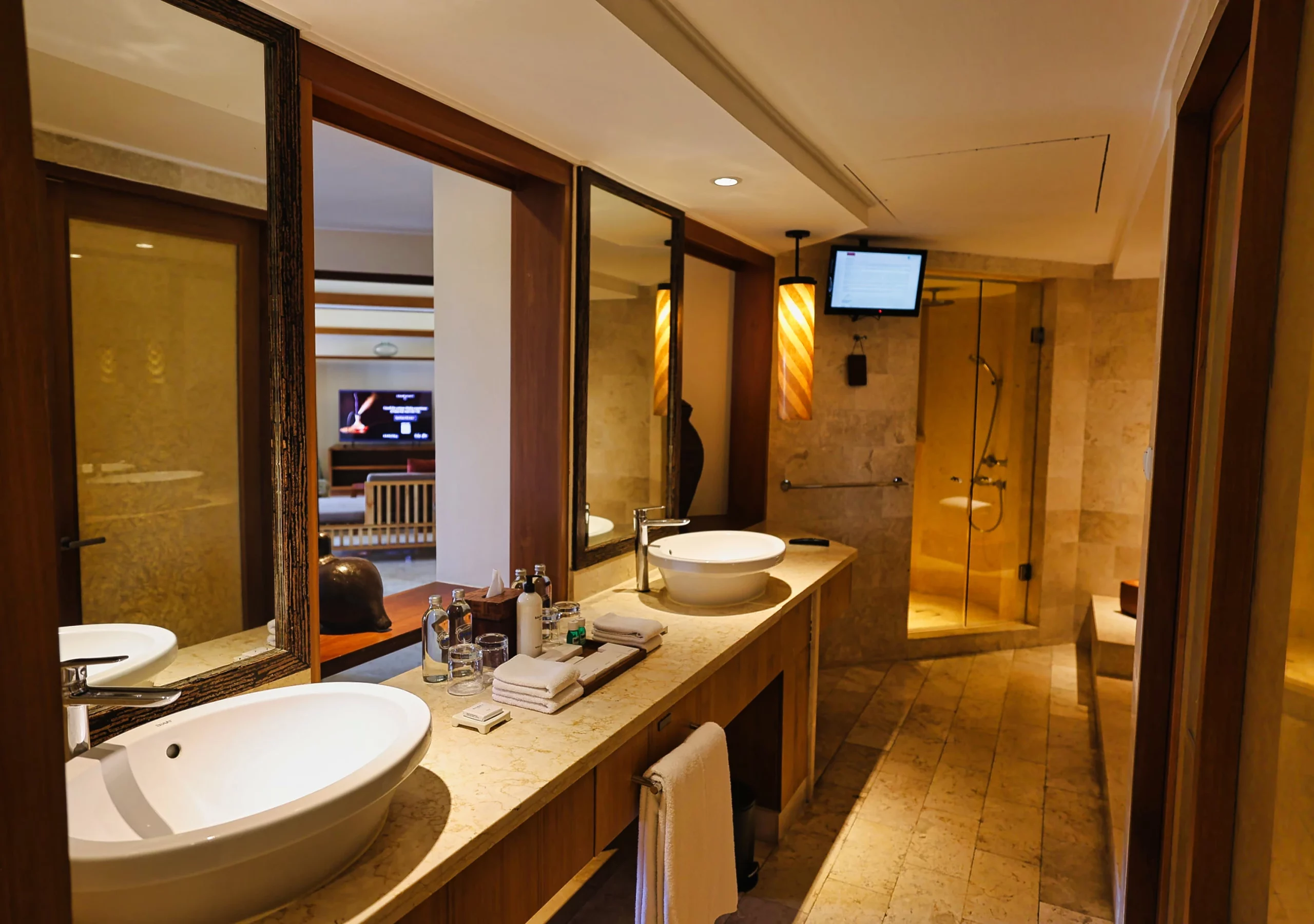 The resort provides direct access to a long, sandy stretch of Nusa Dua Beach. The water here is calm and the beach is clean, making it ideal for a swim, a leisurely walk, or just relaxing on a sun lounger. The main pools are situated right behind the beach, so you can easily hop between the freshwater pools and the saltwater ocean.
