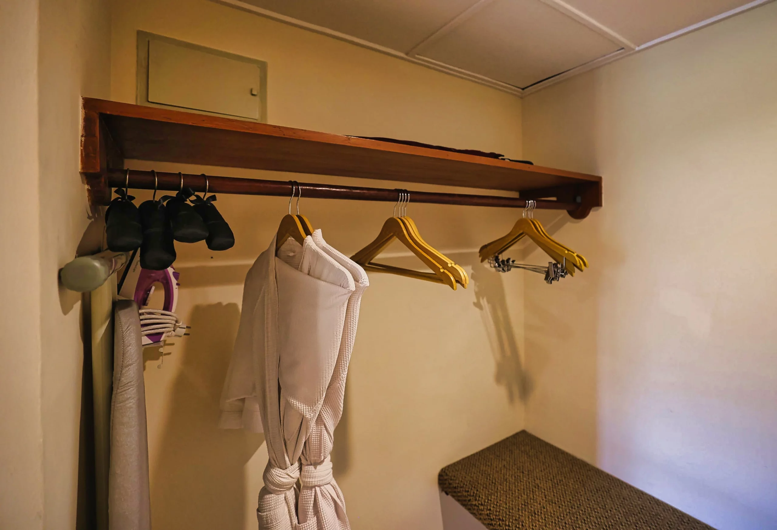 Adjacent to the bathroom was a dedicated dressing area with ample closet space and room to store luggage.