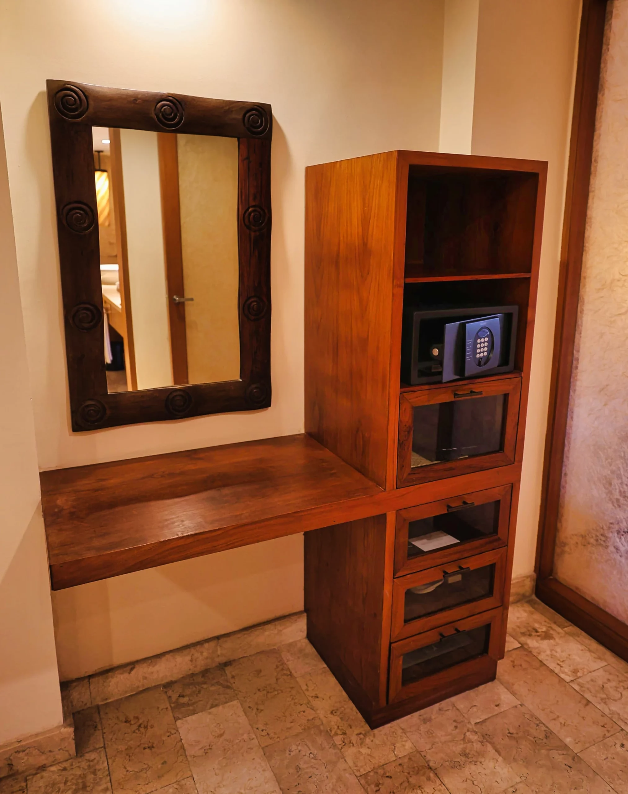 The balcony offered an expansive view out towards the ocean, with the resort’s green gardens and palm trees framing the scenery. It was the perfect spot to soak in the tropical vacation atmosphere. Furnished with a table and chairs, it became our go-to place for enjoying a cold drink in the afternoon.