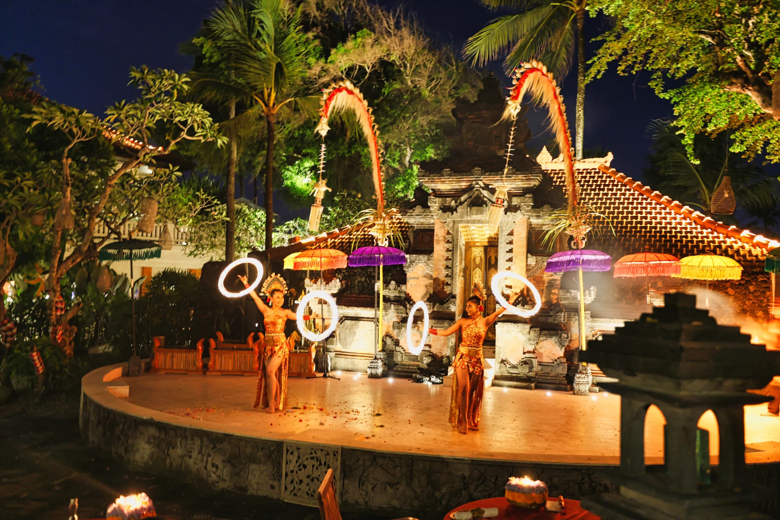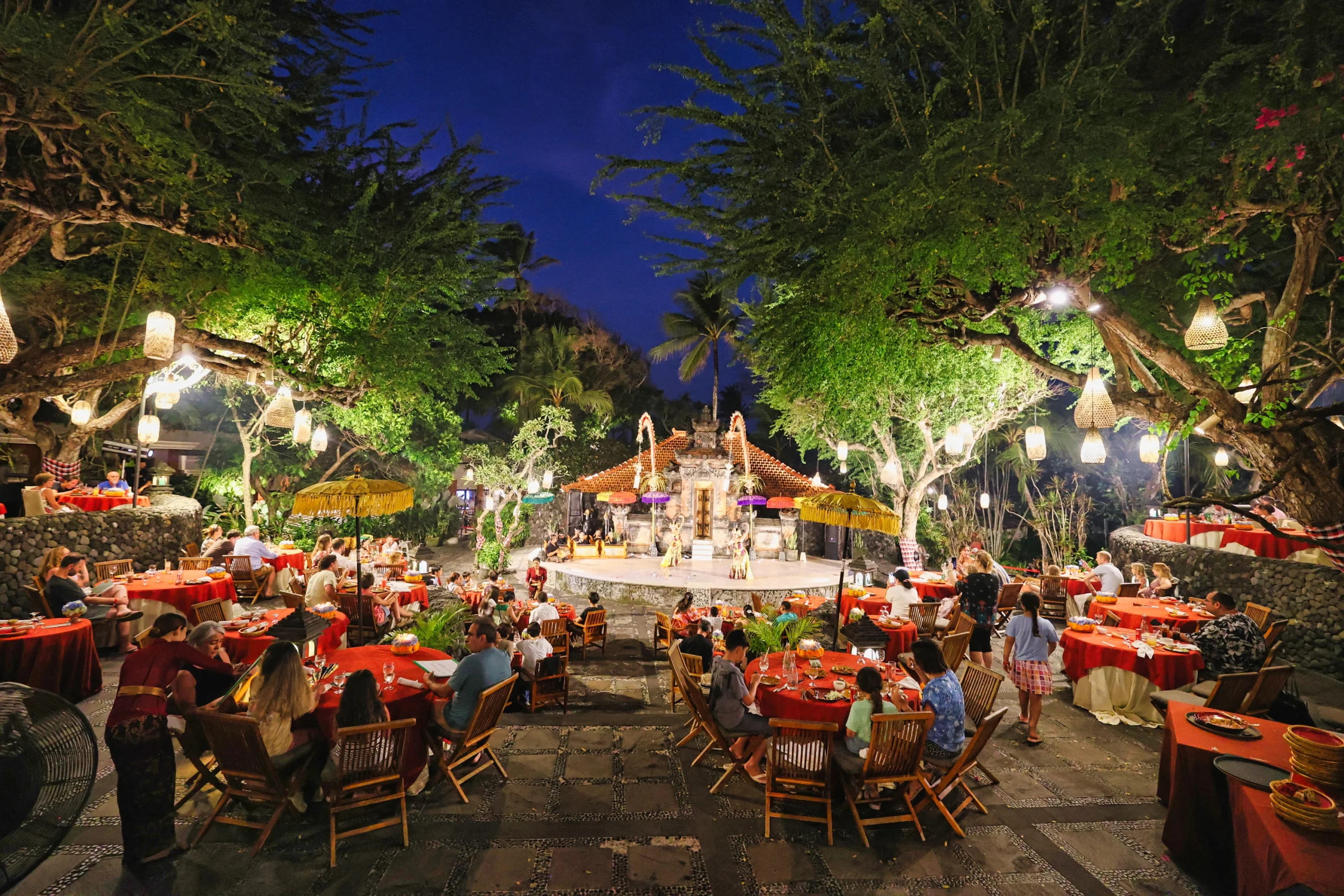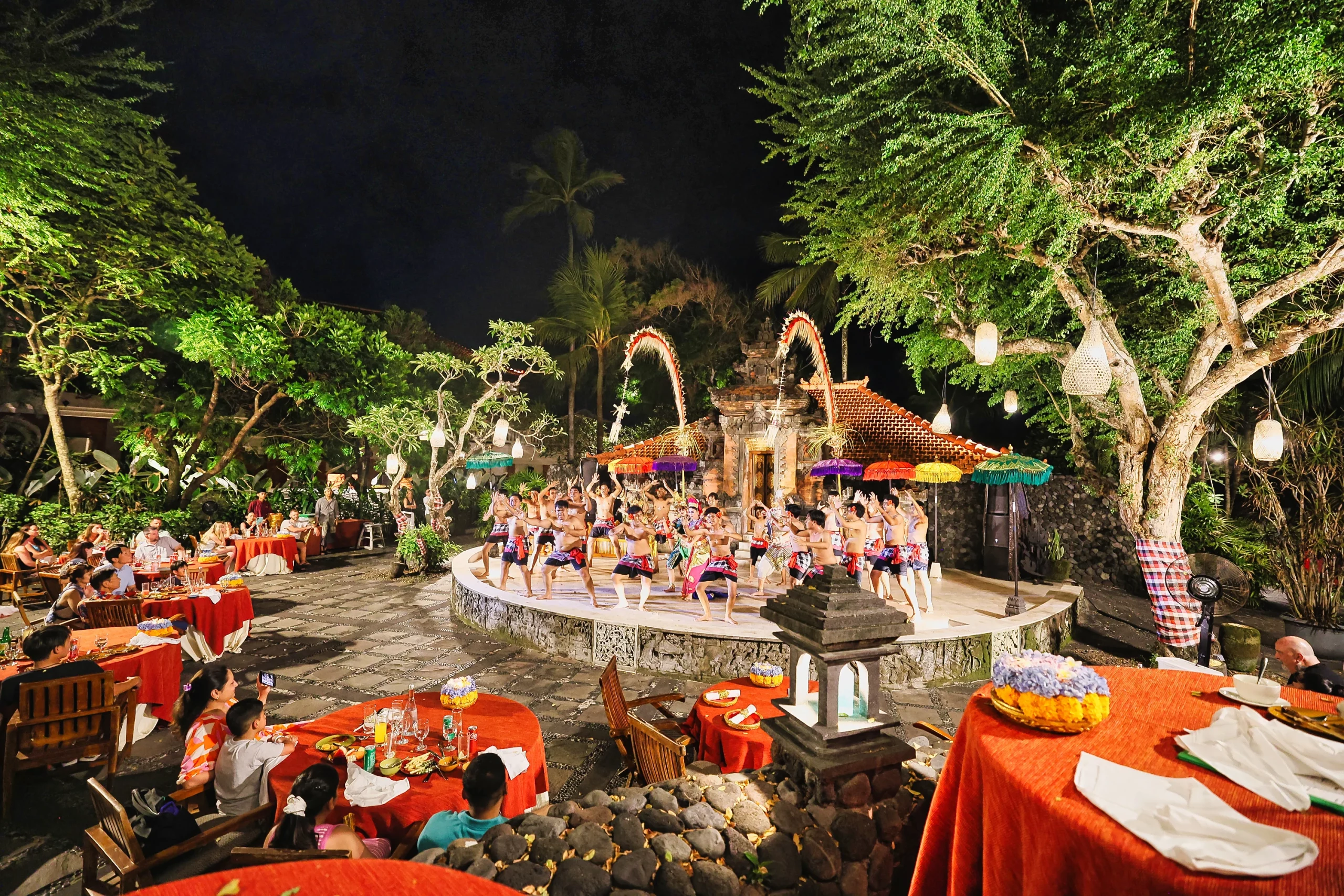 The event recreates the atmosphere of a traditional night market. You can feast on a buffet of authentic Indonesian dishes and fresh seafood while enjoying a captivating series of Balinese cultural performances. The open-air setting is enchanting. Throughout the evening, five distinct performances take the stage. Having seen many cultural shows, I found the quality and variety here to be exceptional. The night also includes interactive moments with the audience, and it concludes with a photo opportunity with the performers, which is a great way to remember the evening.