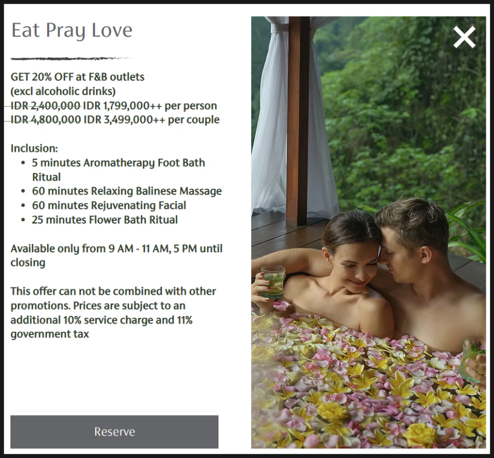 Detailed information about the types of spa programs, prices, and promotions at Maya Ubud Spa can be found on their official website. I recommend checking it beforehand and booking your date and time in advance.